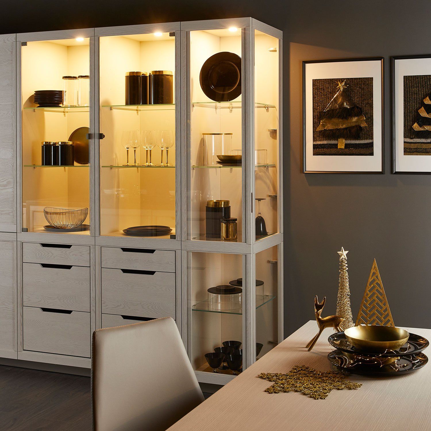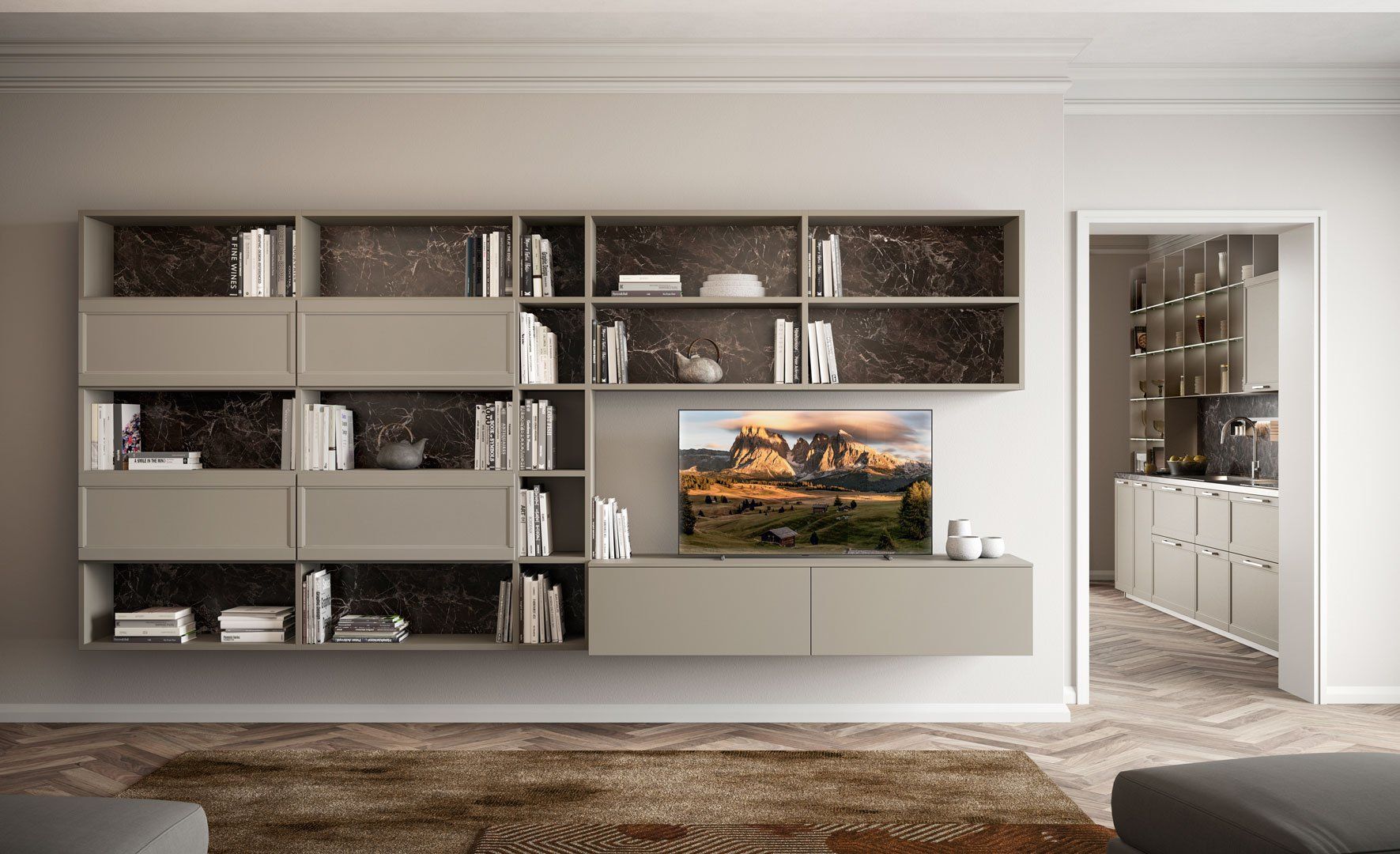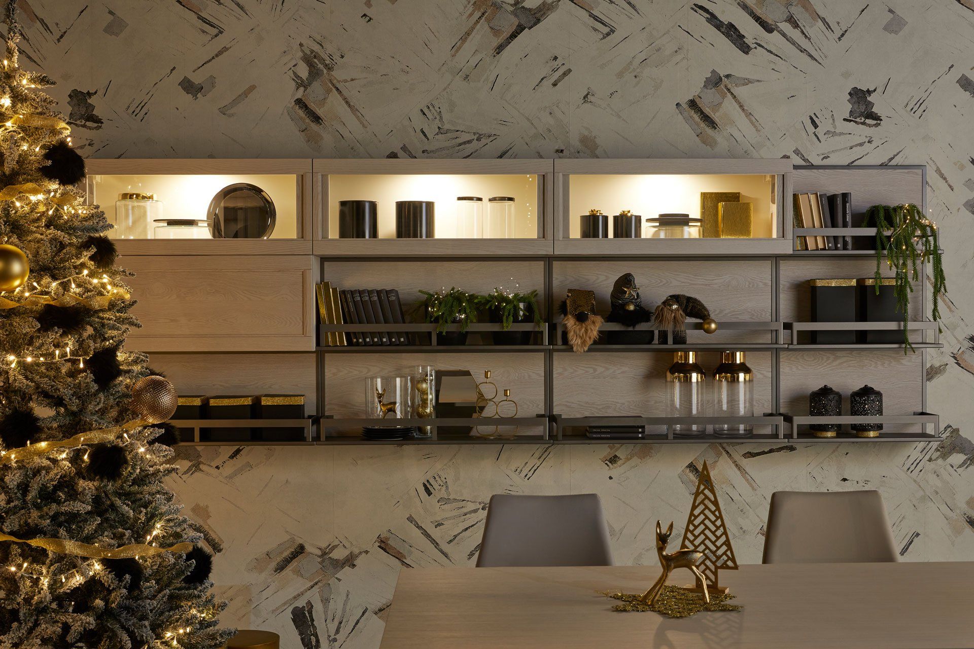 Flavour interpreta lo stile classico con finiture ricercate ed eleganti che creano un ambiente dalla bellezza senza tempo mentre lo spazio di lavoro risulta dinamico e raffinato come richiedono i ritmi di una vita moderna. I volumi rispecchiano i canoni classici ma le forme sono razionali; ogni cosa trova così la sua corretta collocazione. In questa composizione le maniglie in metallo, in perfetta sintonia con gli elementi a giorno in alluminio, creano preziosi dettagli stilistici che si integrano perfettamente con le raffinate gradazioni di grigio che danno carattere a questo modello.